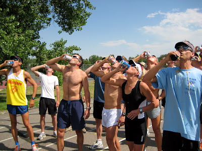 It sure is nice to go to an event that has some serious athletes that feel it is okay to let loose and do something crazy once in a while. Joanna Zieger (Olympian, Ironman Champion and Olympic hopeful for 08) was the host of the Beer Mile that took place the other day. It's funny that Denny was the one that signed me up and both Denny and I wussed out and didn't do it. We got so much crap from JZ about that...but I got her back after she was drunk and I got to witness her CHUNDER on lap 2 LOL! I have the pic of it as I was on "chunder watch" with my camera. If she isn't nice to me I just might post her blowing chunks on the track. And it was chunky!! I also put her in her place later by imitating her being drunk.....she chased me........ I had a 30 min run to go on and I wanted company. I honestly think I could have made her chase me around for 30 min LOL! But I will tell you that JZ is one tough cookie. She just crashed on the bike and had road rash along with a good bang to the head, yet there she is putting the guys to shame at the Beer Mile while telling Denny and I (in between laps) that we are total pussy's! I have a race coming up.....but she has the same race so that didn't really work as en excuse.