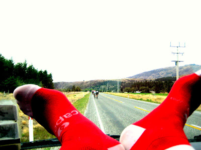 When I got in the van Chris was driving and I stayed quiet at first. He is a great guy and after a bit of conversation I began to realize the major swing that my head had just gone through. I began to see the light and decided that I was doing the best thing for me. "So what if you miss a day on the camp?" I told myself. It is better than missing a season. I was still a little irritated that I was now stuck in a van for most of the day but I got over that when I realized that I could be the photo guy for a while and stick my head out and take pictures of the other campers. I also decided that I would run the TT (not physically- I mean manage) up the Crown Range.